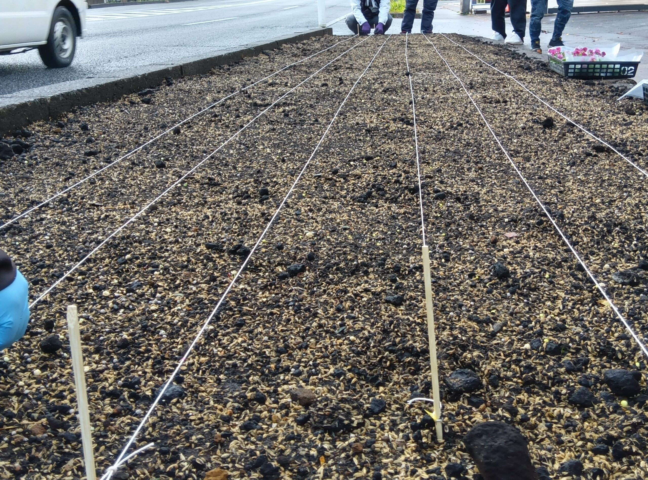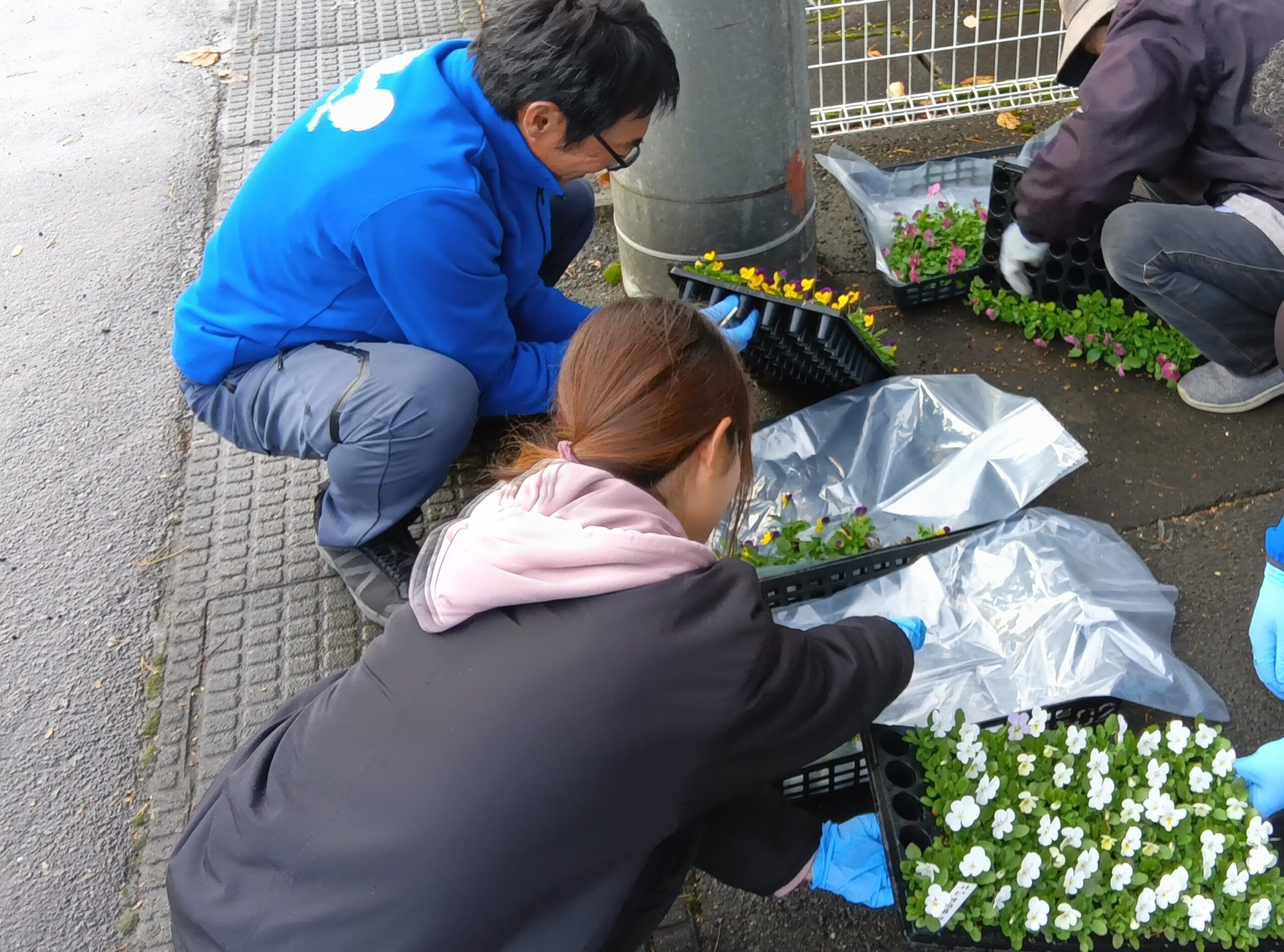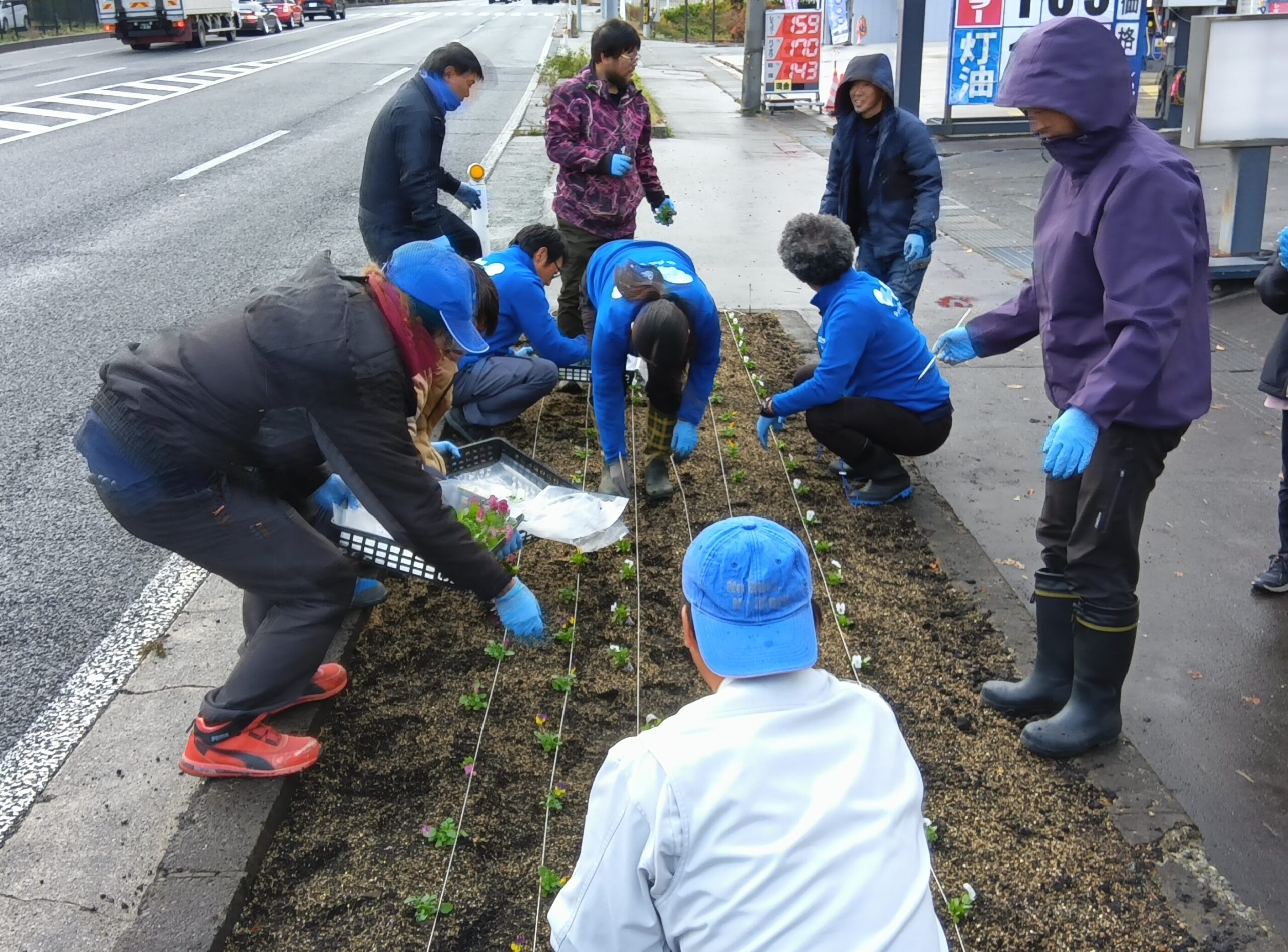 社員が協力して苗を植える姿は、チームワークと季節の楽しみを感じさせるひとときとなりました。
